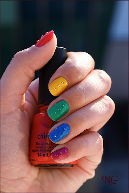 My nails are relatively small so I had to use a simplified rainbow :-). I have used only the main colors: red, yellow, green, blue and purple.